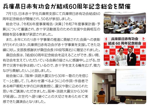 日本赤十字社兵庫県支部の赤十字社員増強運動及び赤十字思想の普及のため、兵庫県日赤有功会名入りの記念品(救急絆創膏)を作成し、各種イベント等で配付しました。